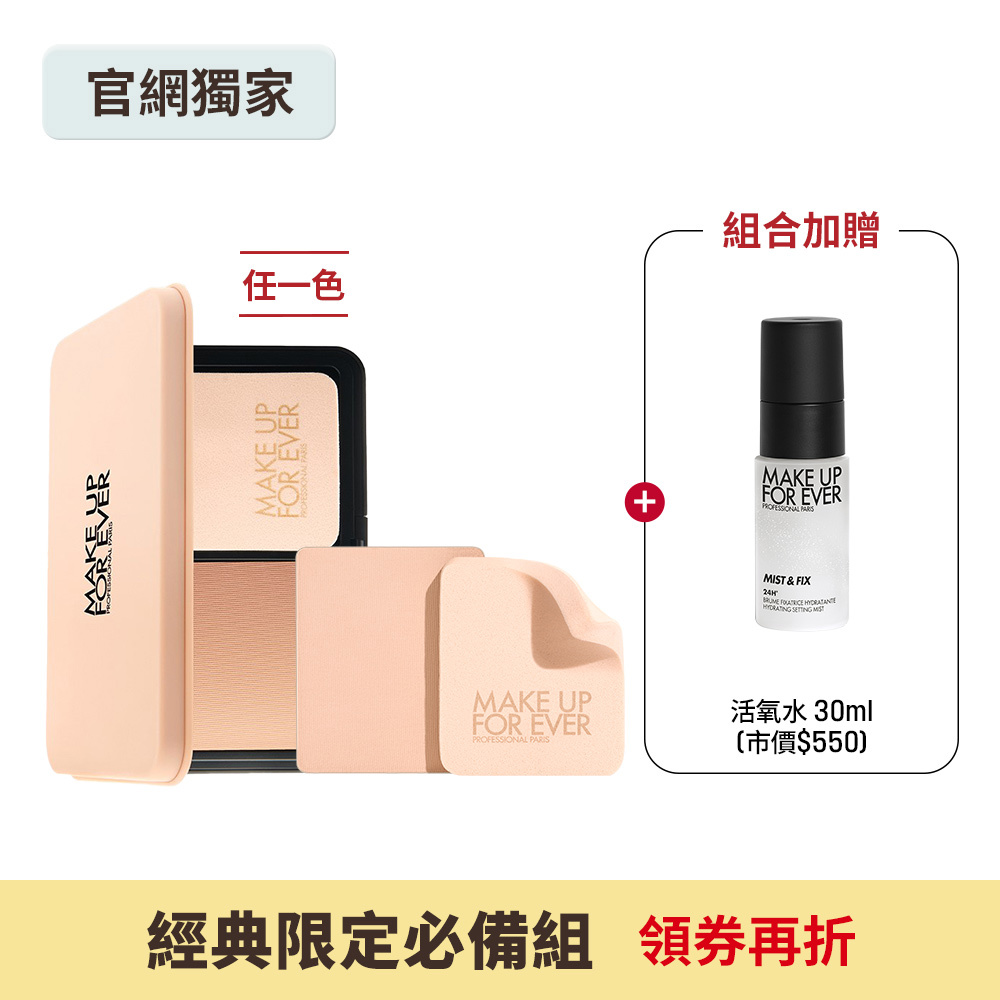 【經典限定必備組】HD SKIN 粉無痕柔霧空氣粉餅+HD SKIN 粉無痕柔霧空氣粉餅蕊心+超光肌活氧定妝噴霧30ml #活氧水 - MAKE UP FOR EVER