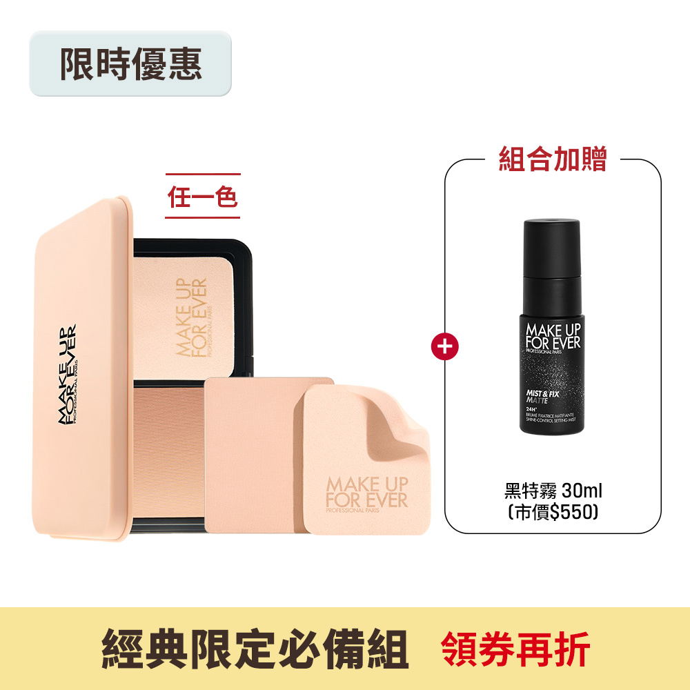 【經典限定必備組】HD SKIN 粉無痕柔霧空氣粉餅+HD SKIN 粉無痕柔霧空氣粉餅蕊心+超光肌控油定妝噴霧30ml #黑特霧 - MAKE UP FOR EVER