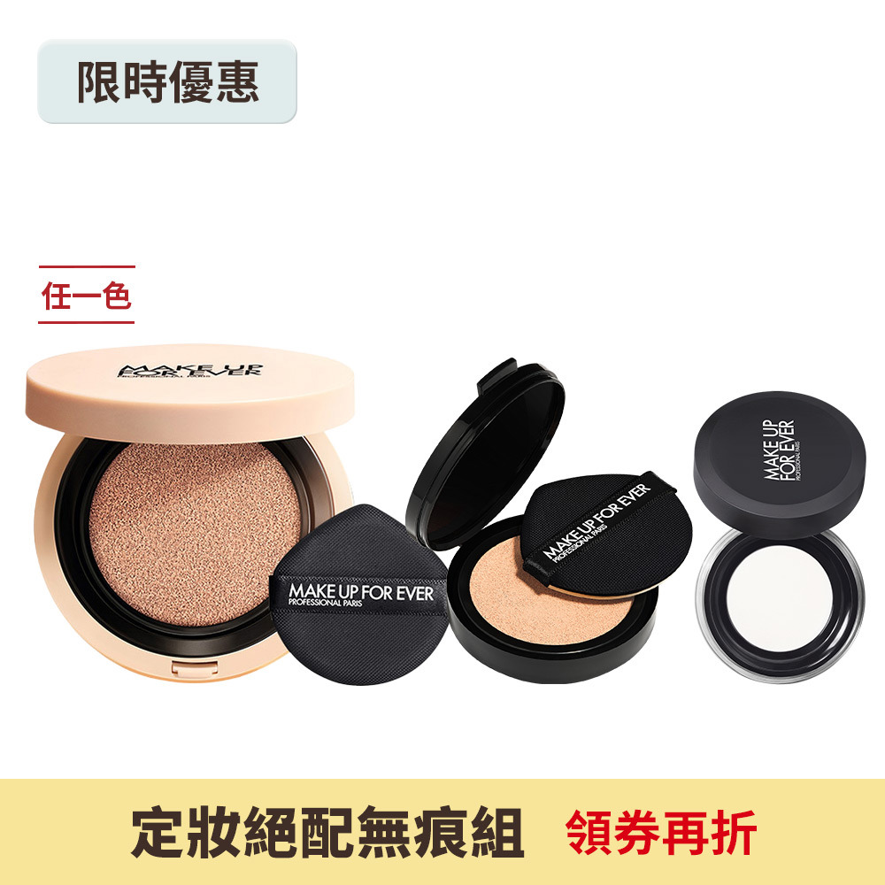 【定妝絕配無痕組】HD SKIN 粉無痕美肌氣墊粉餅+HD SKIN 粉無痕美肌氣墊粉餅蕊心+HD SKIN 粉無痕光圈蜜粉4g - MAKE UP FOR EVER
