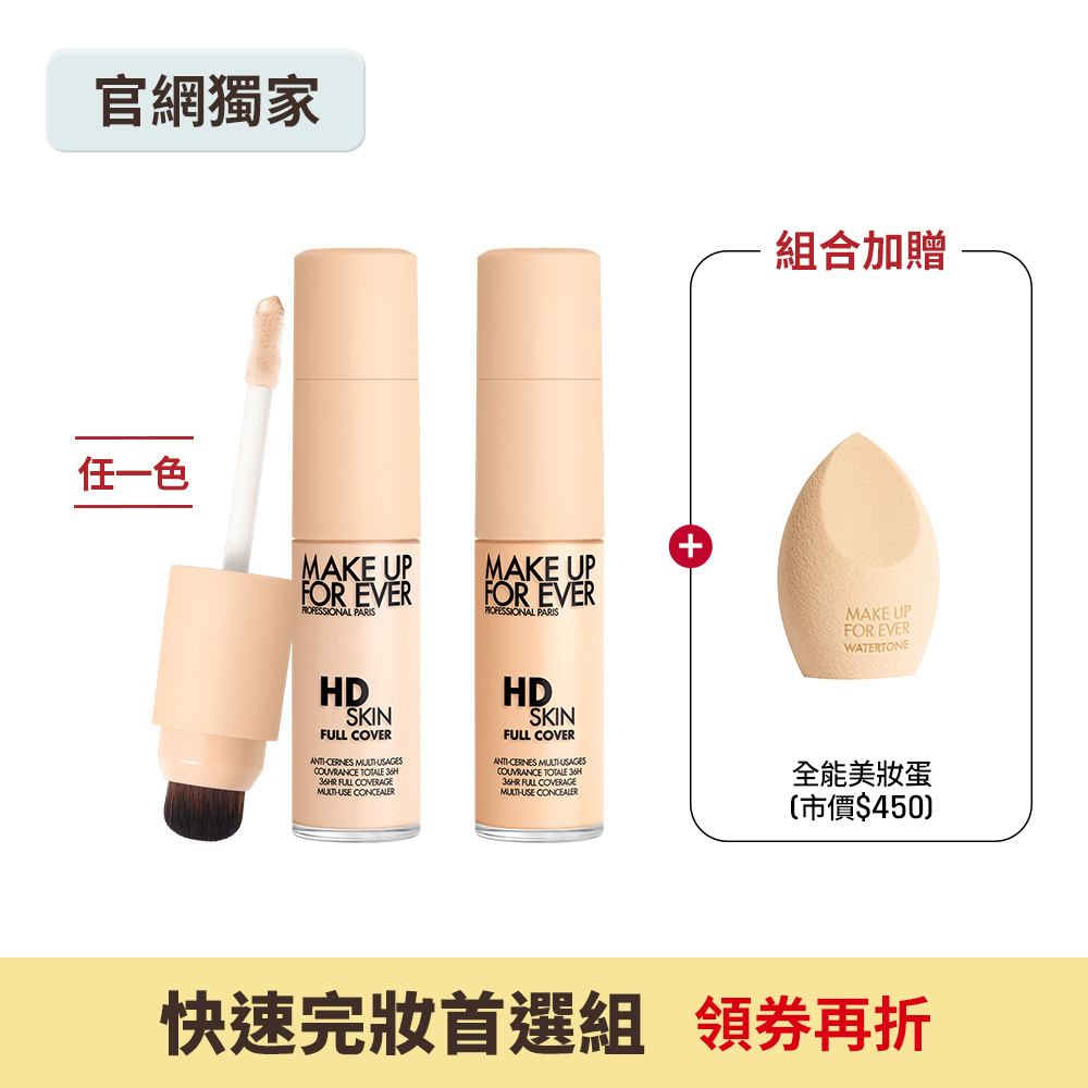 【快速完妝首選組】HD SKIN 粉無痕魔力防水遮瑕霜兩入組 #瑕疵擦擦筆 +全能美妝蛋 - MAKE UP FOR EVER